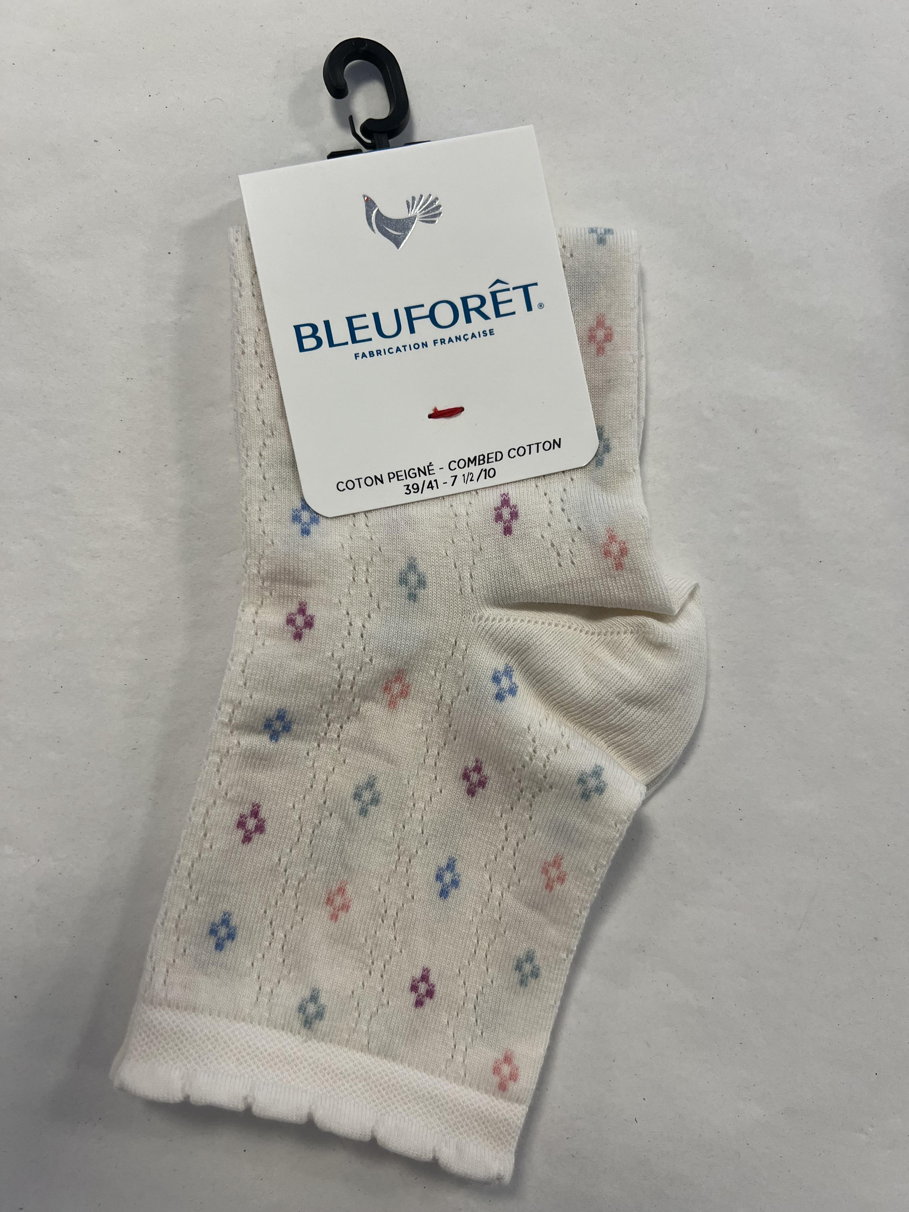 Bomullsokk med blomseter. Rekker rett over ankelen.