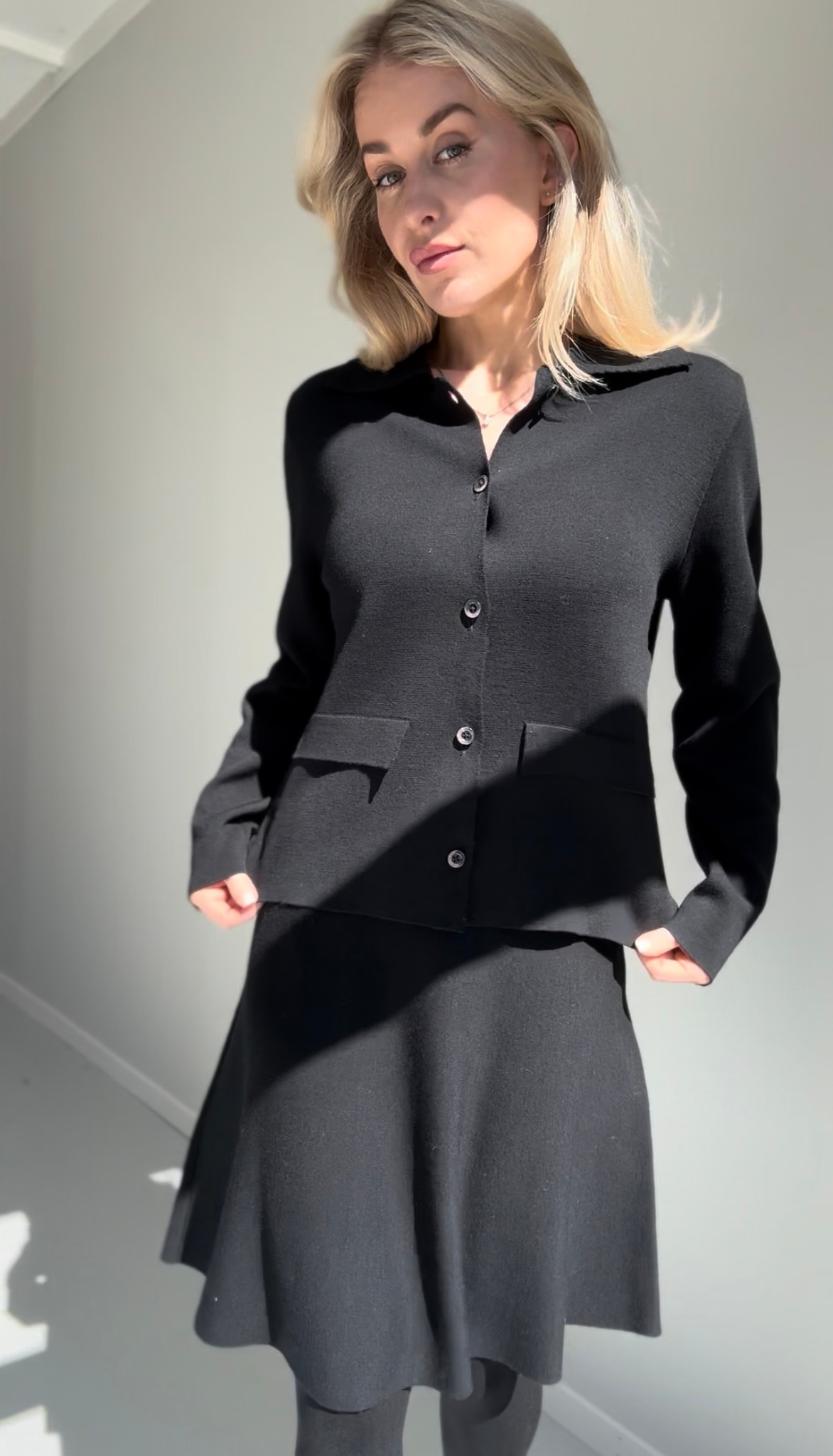 Deilig tynn tettstrikket cardigan med rund hals og knapper foran.