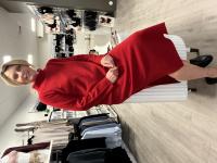 Kjole med rett enkelts snitt, lange ermer og liten løs hals.